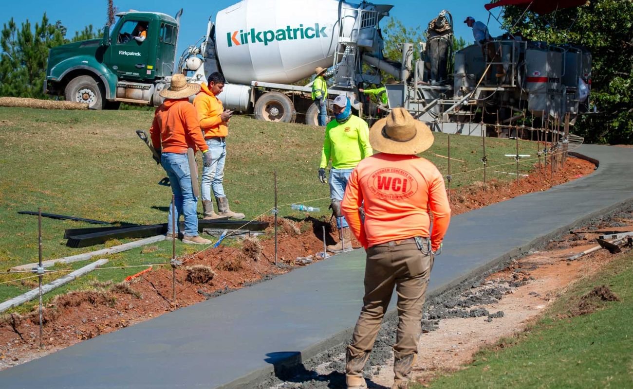 “This was a cool project for us,” Spencer Glassco, General Manager of Kirkpatrick North, said. “Typically, golf course paths are constructed with asphalt paving. Concrete was chosen for its sustainability. The paths will use about 3,500 cubic yards of concrete when complete. The only significant challenge has been timing the pours to coincide with the weather,” he added.